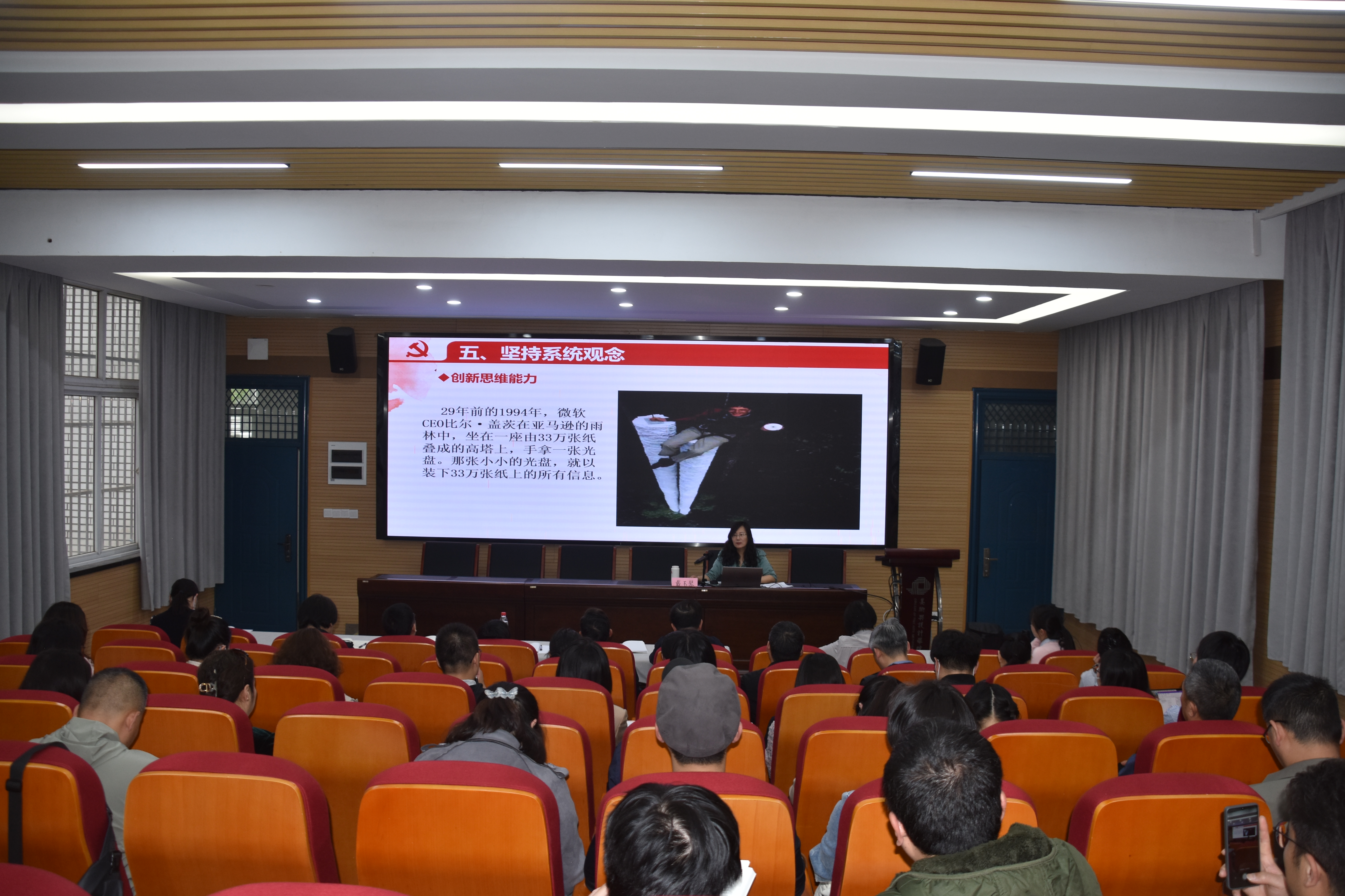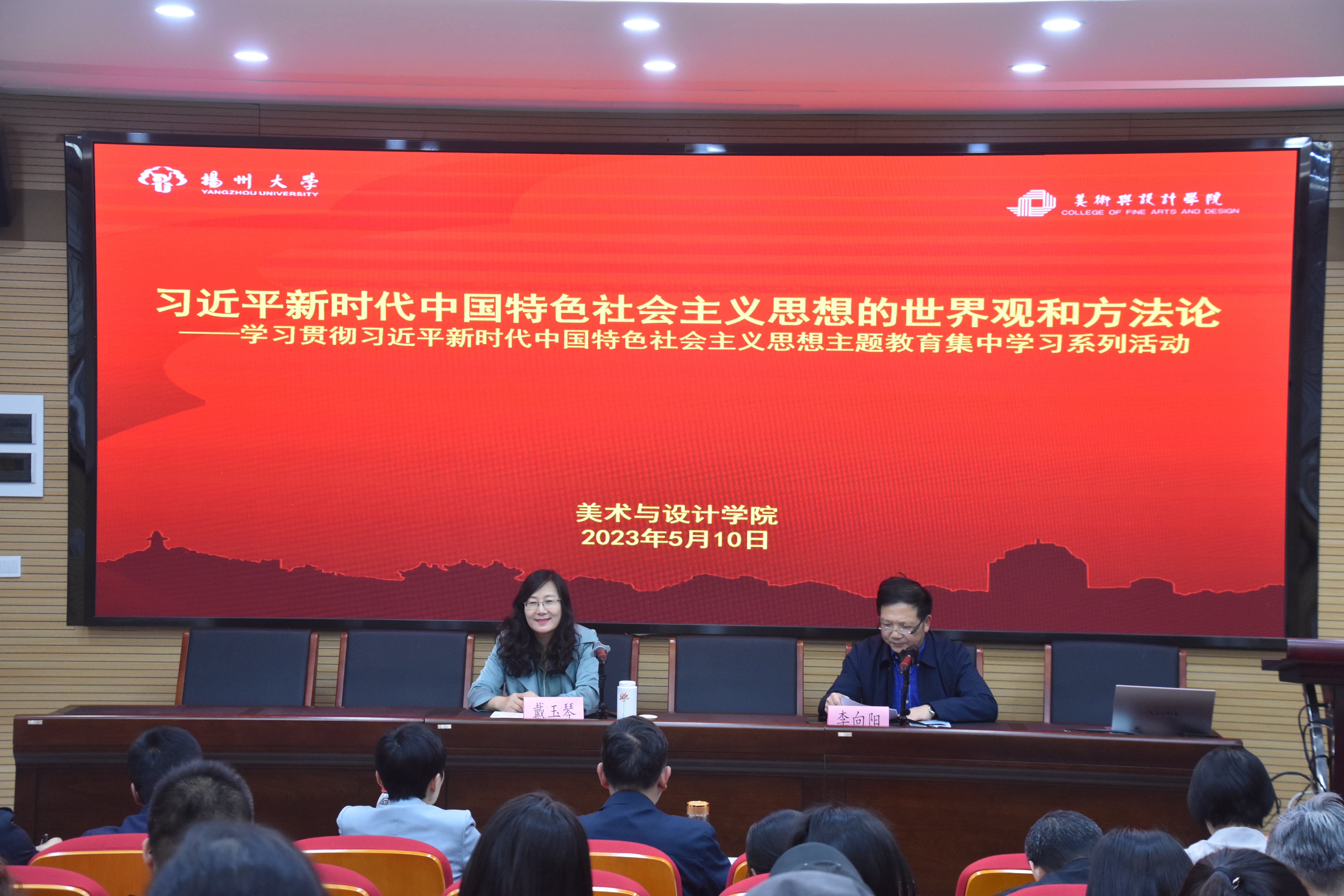 在美术与设计学院学习贯彻习近平新时代中国特色社会主义思想主题教育专题读书班上,学院邀请到学科办戴玉琴教授作专题授课。院党委书记李向阳同志主持会议并讲话, 海外教育学院、医学部、美院全体教职工及研究生党员约100人参加。