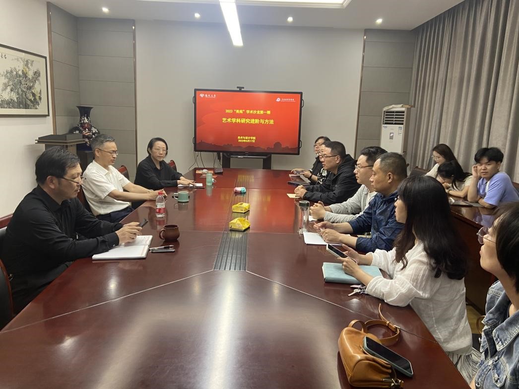 讲座结束之后,开展了2023第一期“美苑”学术沙龙活动。围绕“艺术学科项目的申报及论文的撰写的重要性及意义”、“科研过程中的经验与方法交流和介绍”、“青年教师和研究生交流互动”三个环节进行交流。潘天波教授讲解了自己的科研与教学相互结合互相促进的方法与过程,分享了在这些过程中取得成果的想法与经验感受。青年教师和研究生代表参加了此次沙龙活动。