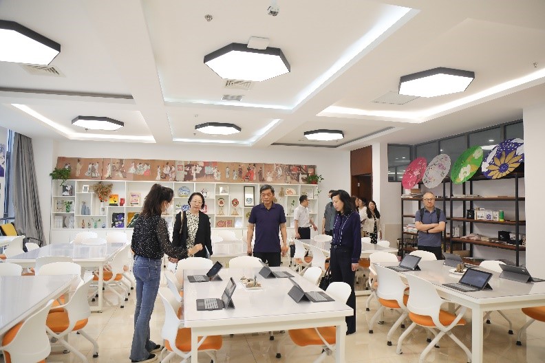 揭牌仪式结束后,邗江中学朱大新副校长还带领大家参观了艺术馆大楼里的数字鉴赏美术、版画工作室、国画工作室、素描工作室、油画工作室、剪纸工作室等。