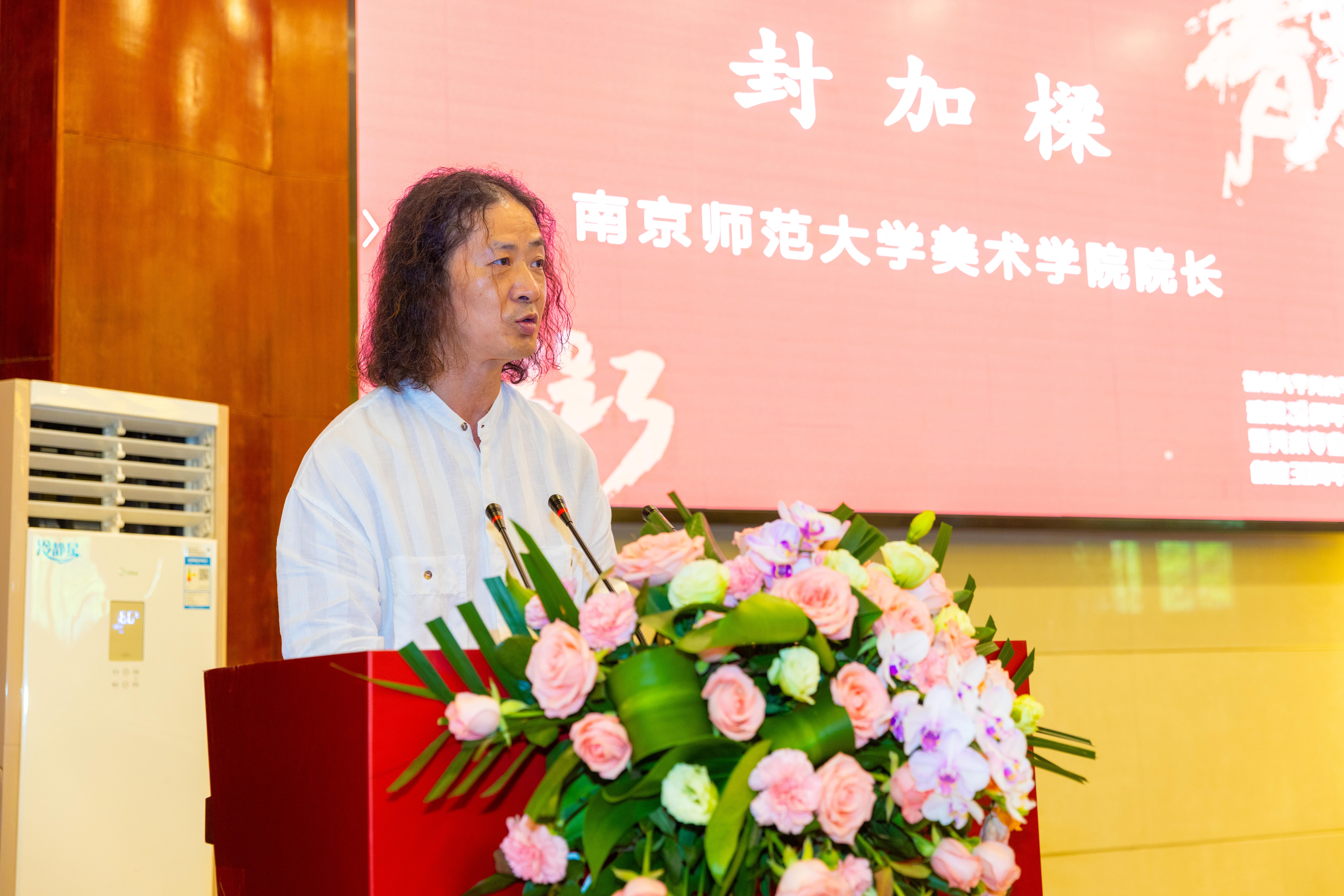 南京师范大学美术学院院长封加樑作为兄弟高校代表,向美术与设计学院表示祝贺。他表示扬州大学美术与设计学院在美术、设计两个领域分别取得了累累硕果,得到了教育界和社会的认可。今后两家学院加强沟通、相互借鉴、共同提高,一起为新时代美育事业贡献新的更大力量。