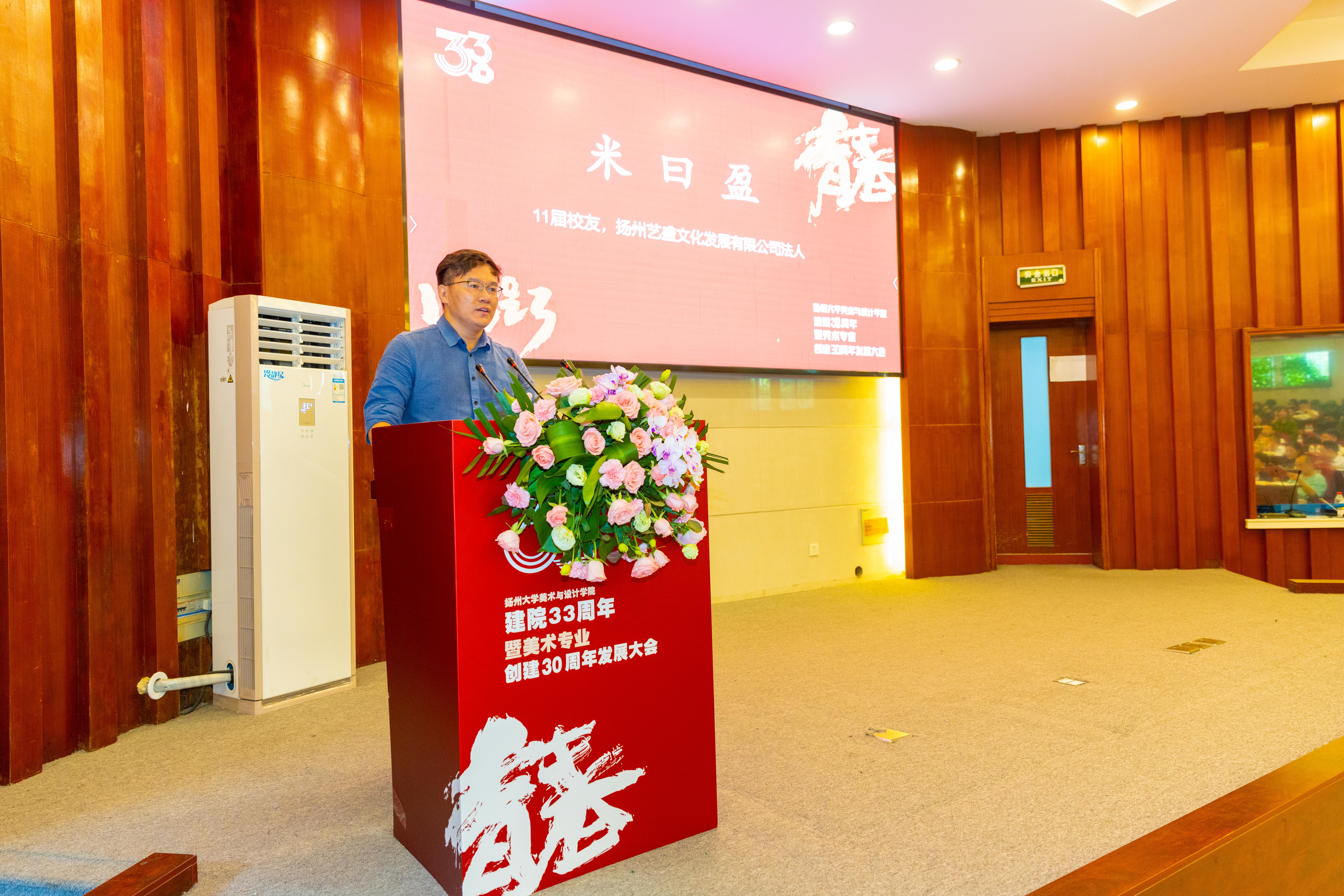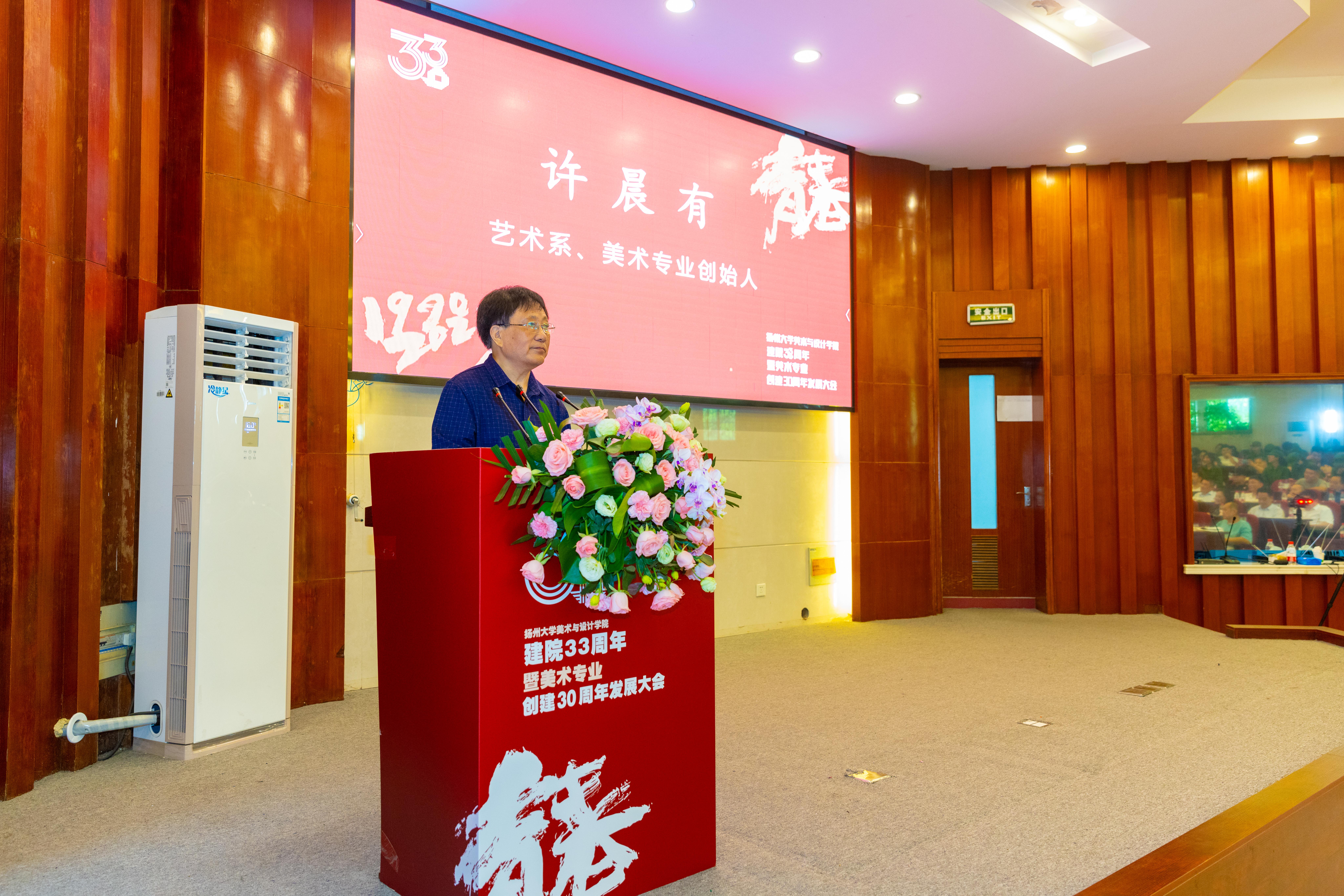 我院第一个专业建筑装饰工程专业创始人吴龙声以及艺术系、美术专业创始人、扬州大学艺术学院原党委书记许晨有分别讲话,他们均表示对美术与设计学院如今的事业发展以及校友的成就感到欣慰。