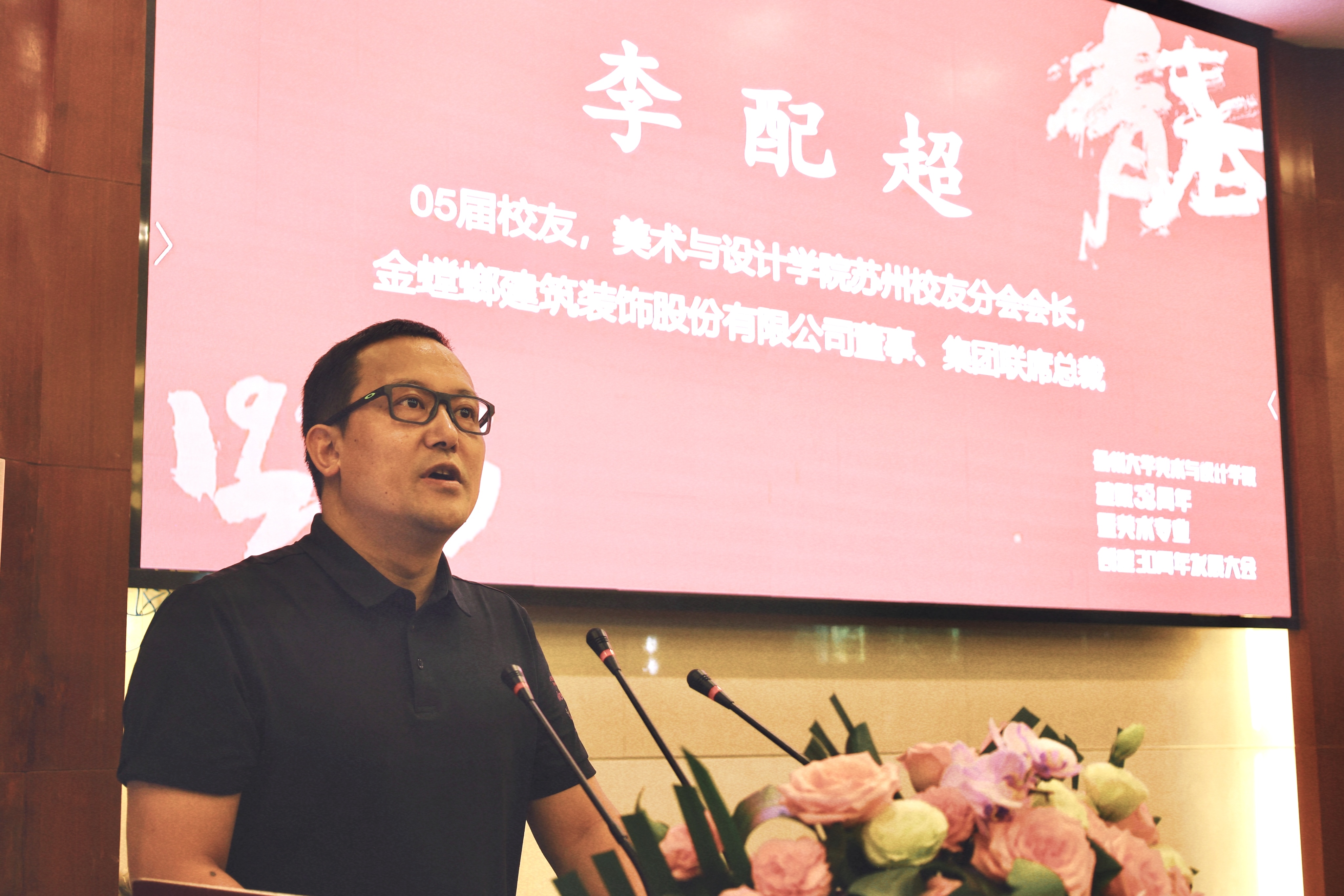 我院苏州校友分会会长、金螳螂建筑装饰股份有限公司董事、集团联席总裁李配超代表捐赠校友发言。他非常感谢母校的培养,也非常荣幸能为学院的发展添砖加瓦,并期待日后进一步加深与母校的合作与交流。