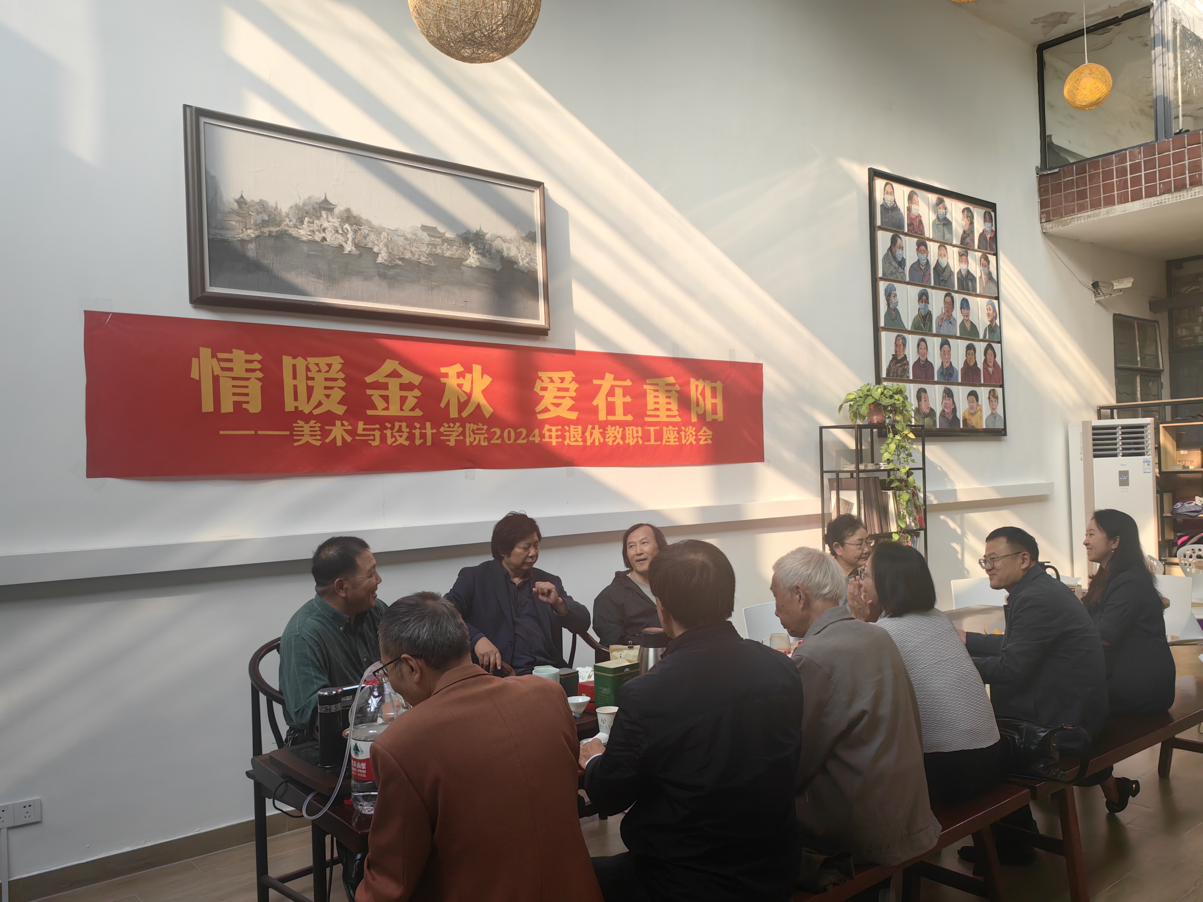 金风送爽,丹桂飘香。在这个充满温情的金秋十月,美术与设计学院于 2024年10月11日举办了“情暖金秋,爱在重阳——美术与设计学院退休教职工座谈会”。学院领导、在职教师代表与退休教职工欢聚一堂,共话学院发展,同庆重阳佳节。