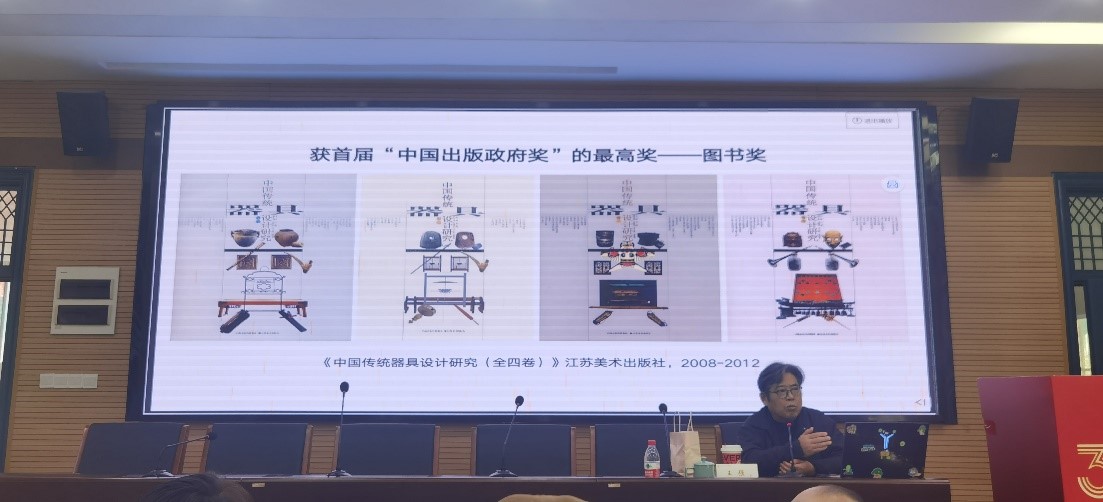 报告伊始,王强教授围绕《探赜索隐 —— 中国传统设计思想史纲》的核心内容展开论述。无论是中国传统设计思想的起源、发展脉络,还是不同历史时期设计思想的核心特征与文化内涵,他都能够用深入浅出的表达带领在场师生领略中国传统设计文化的独特魅力。他指出,中国传统设计思想蕴含着古人对自然、社会与生活的深刻思考,是当代设计创新与学术研究的重要源泉,为在场师生开展相关领域研究提供了全新的学术视角。