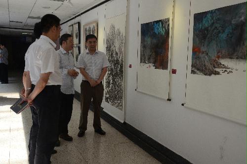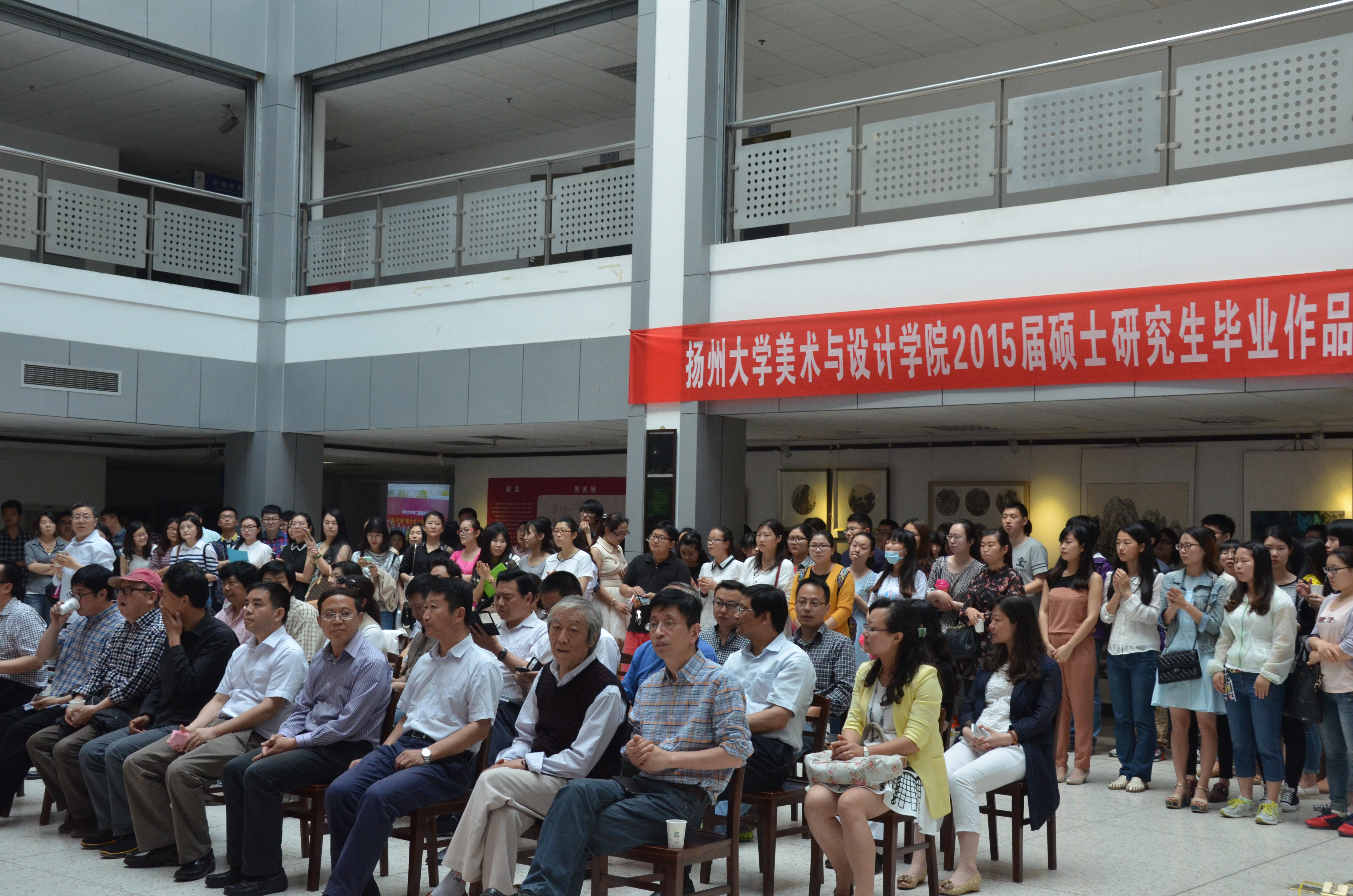 我院“2015届研究生毕业作品展”于5月25日上午10点在荷花池校区图书馆展厅隆重开幕。副校长陈永平教授、扬州市文联主席刘俊先生、瘦西湖风景区管委会党工委书记郭坚先生、邗江区文体新局局长何云峰先生、扬州国画院院长安玉民先生等出席开幕式。
