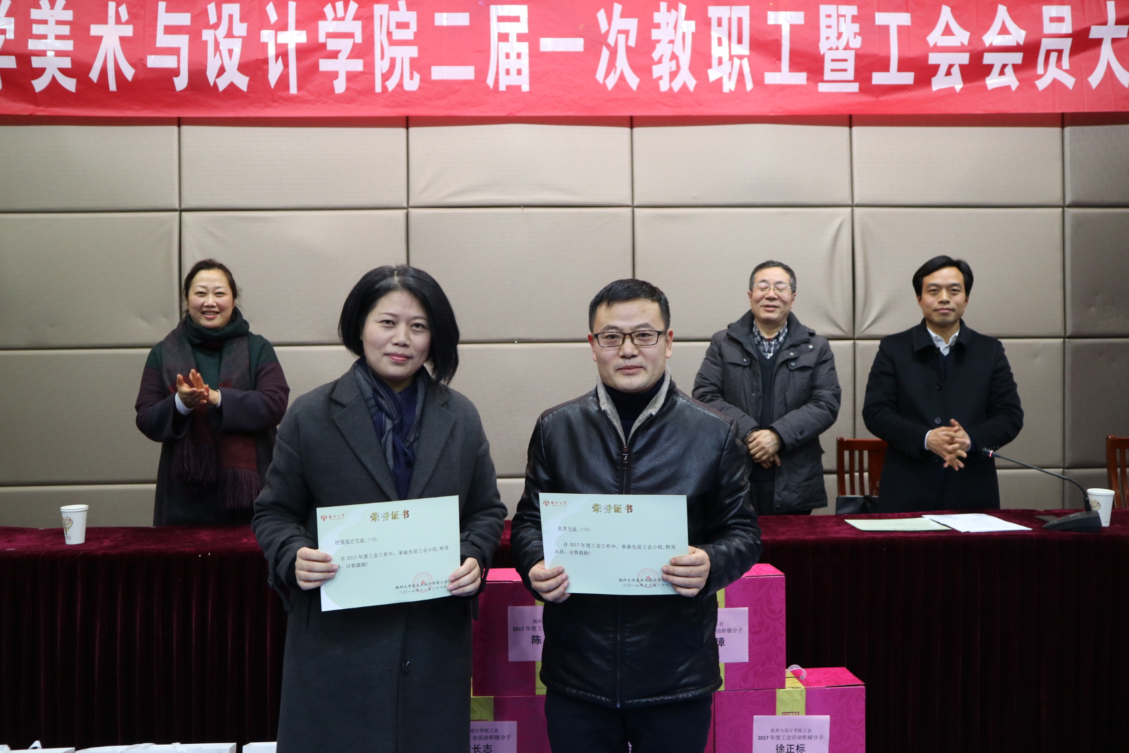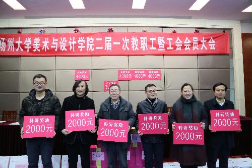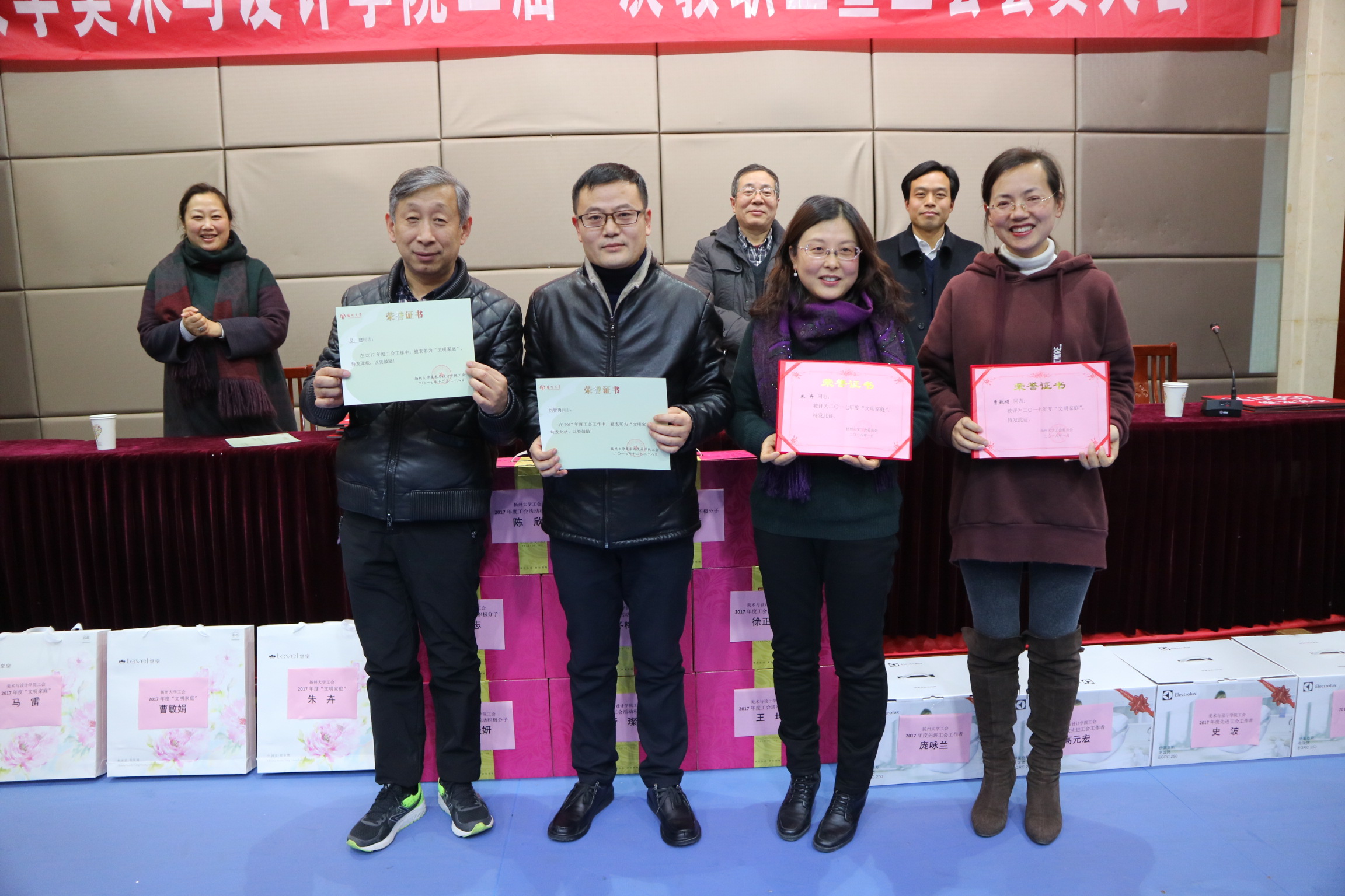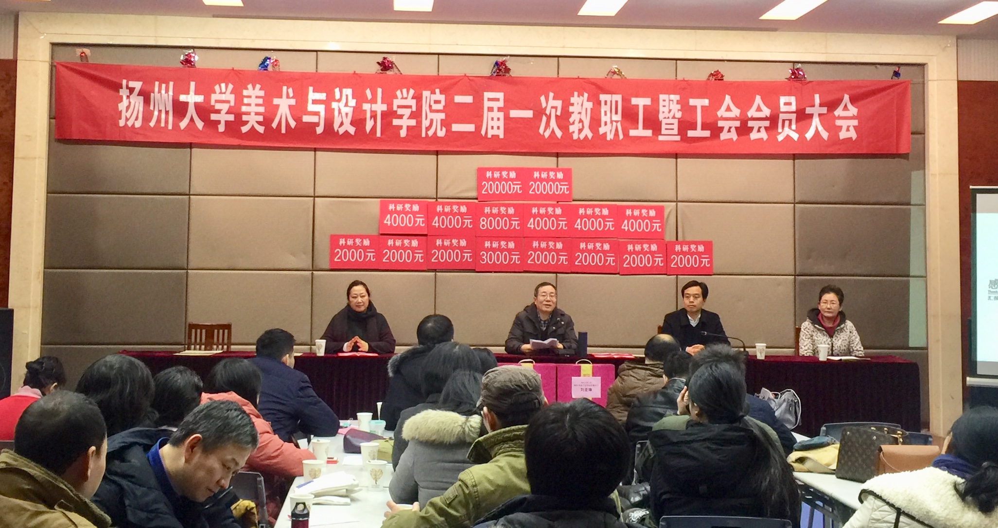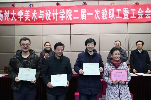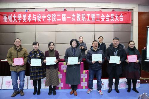 2018年1月18日下午,美术与设计学院在瘦西湖校区教工之家召开了二届一次教职工会暨工会会员大会。大会听取了院长贺万里关于学院年度工作和经费使用的情况报告、院工会主席庞咏兰所作的“院工会工作报告。会议还举行了学院科研奖励和工会年度表彰颁奖仪式。