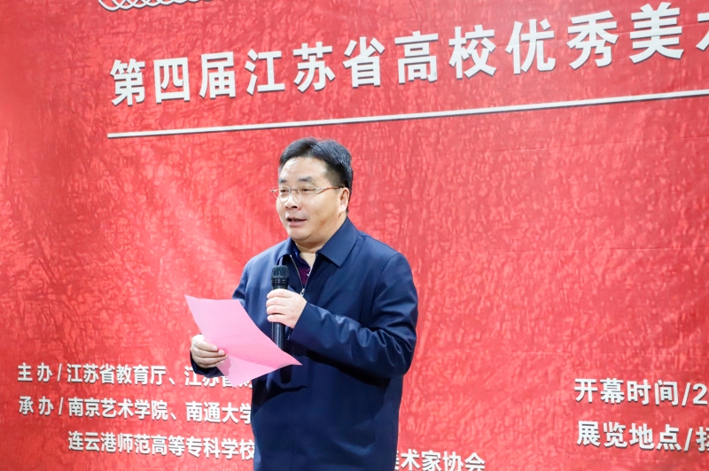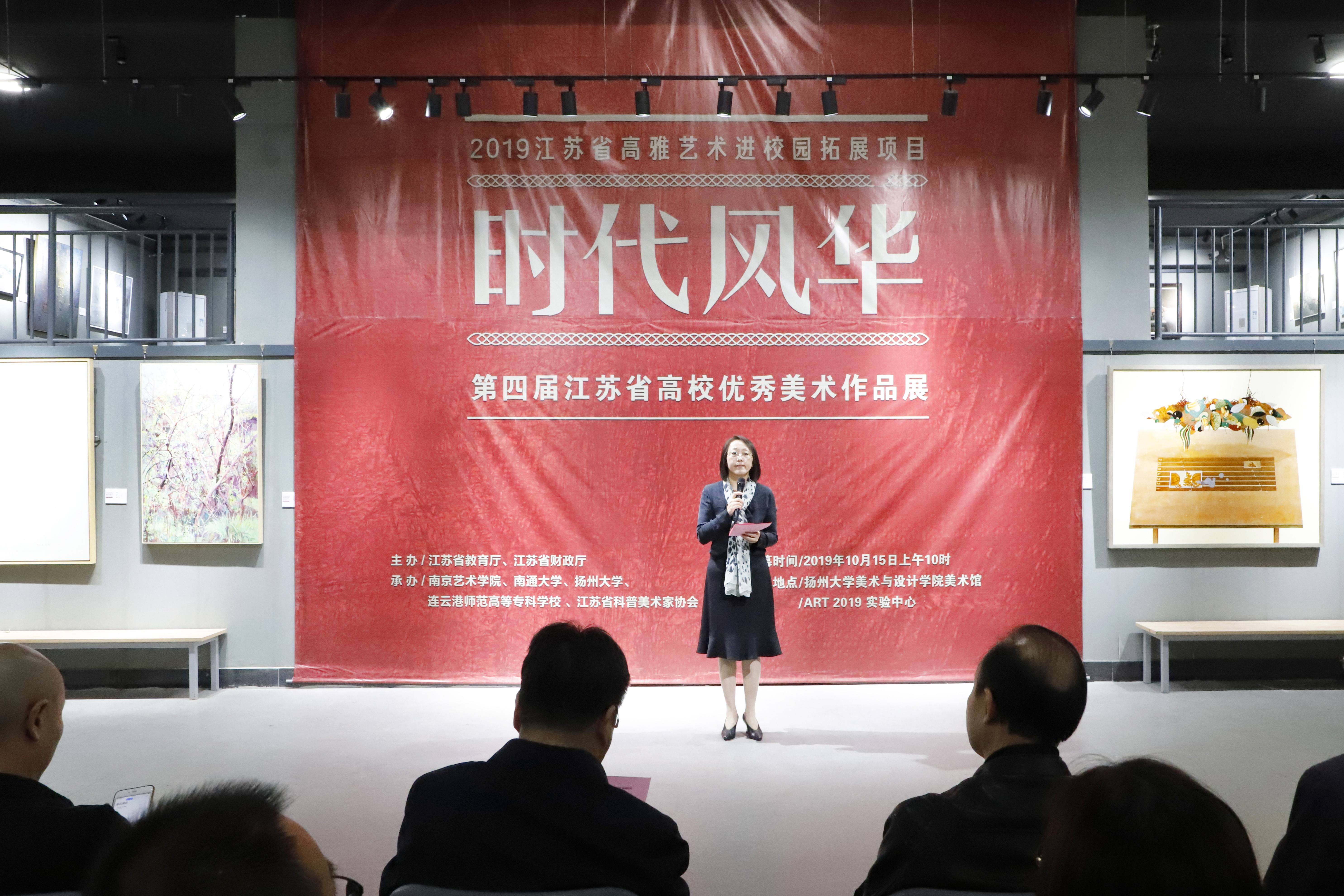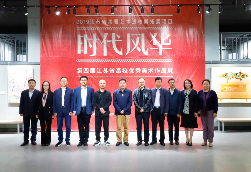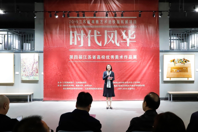 10月15号上午,“时代风华——第四届江苏高校优秀作品展”开幕式于我校江阳路南校区美术馆举行。本次展览由江苏省教育厅、江苏省财政厅主办,南京艺术学院、扬州大学等共同承办。