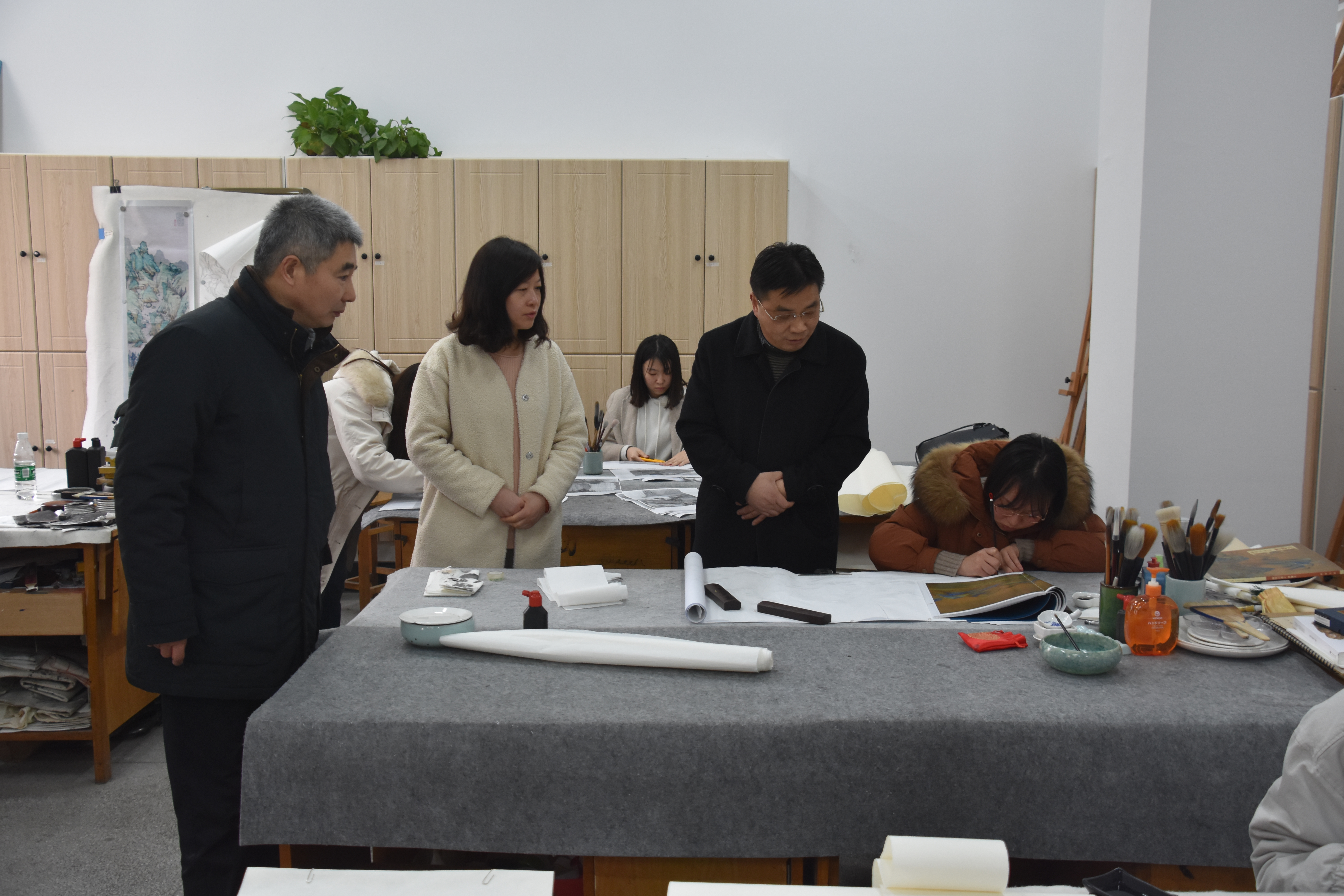 黄建晔在参观实训中心、17号楼、美术馆、16号楼后听取学院负责同志相关工作汇报,对学院搬迁后所取得的成绩表示肯定。黄建晔指出,学院搬迁到位后硬件设施大为改善,正是不断增强“软件”实力的大好时机,院领导班子要不断强化主体责任意识,工作中守纪律、讲规矩,按制度办事;本科教学稳打稳扎,要坚持“以本为本”,重点在课堂建设、专业建设、课程建设上下功夫;要对教职工提出更高的要求,督促教师建好教学台账,抓好教风、学风建设,鼓励教师在教材建设上多做贡献;要坚持党的领导,做好师资队伍建设,集中力量重点在1-2个学科上求突破,不断提高学院影响力。
