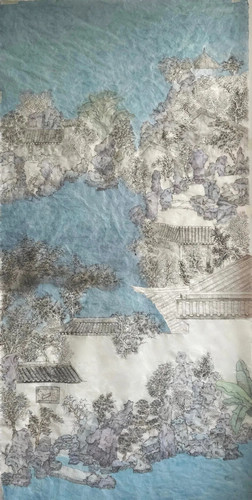 此画中的亭台楼阁还是门窗轩榭中都采用了低调沉稳的色彩,饱和度低,趋向素雅清淡,反而可以衬托出园内自然之美。不喧宾夺主,达到了景观与建筑的和谐共存。整体园林的色彩运用符合文人雅客对于江南风光的理解,形成了清远幽静、温婉素雅的意境美。