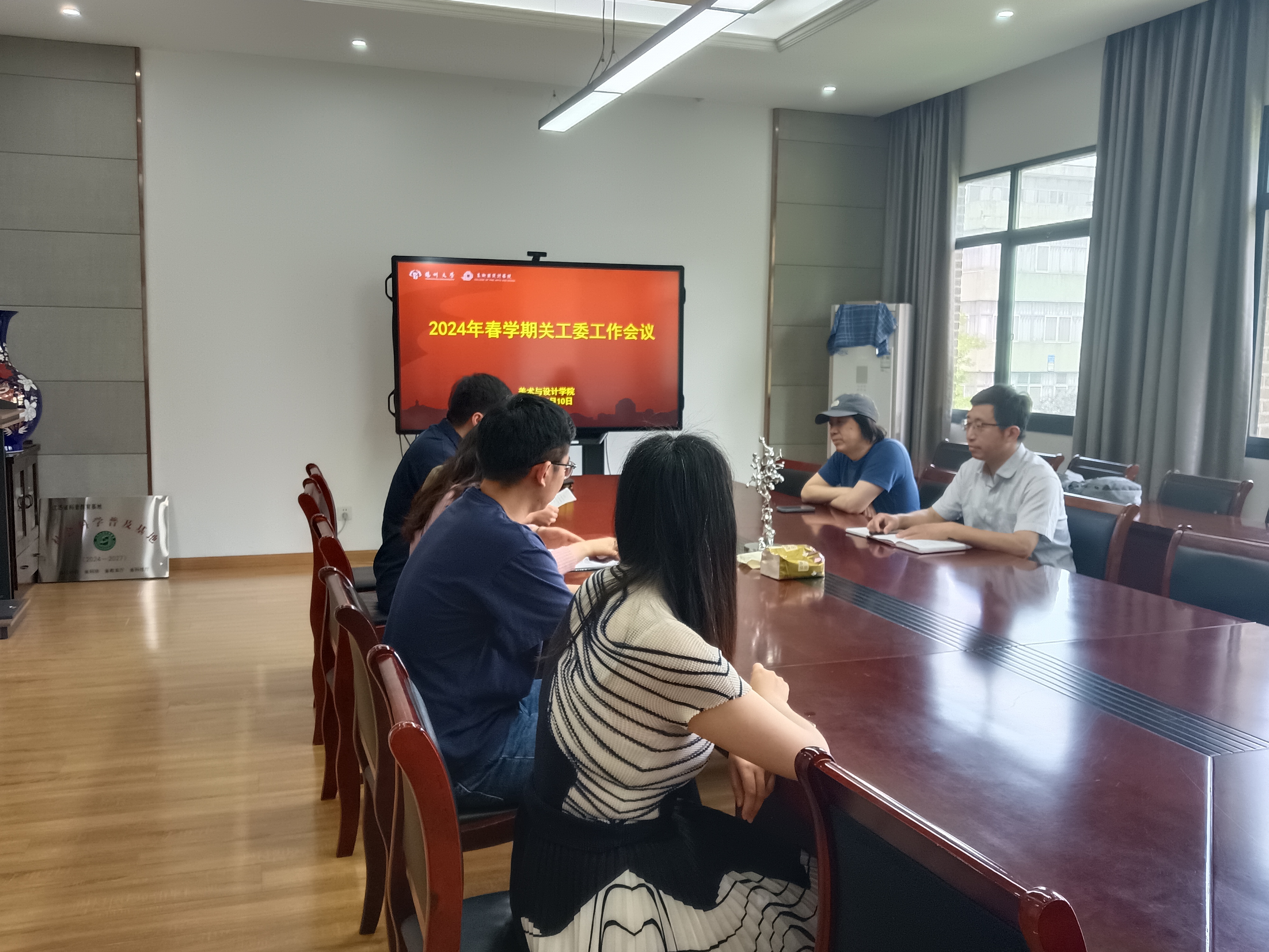 2024年5月10日上午,美术与设计学院在江阳路南校区16号楼302会议室召开了2024年春学期关工委工作会议。美术与设计学院党委副书记、关工委主任周锋,院关工委常务副主任徐邠,辅导员郝琳琳、万小彬、张栩箫等出席会议。会议由学院党委副书记、关工委主任周锋主持。