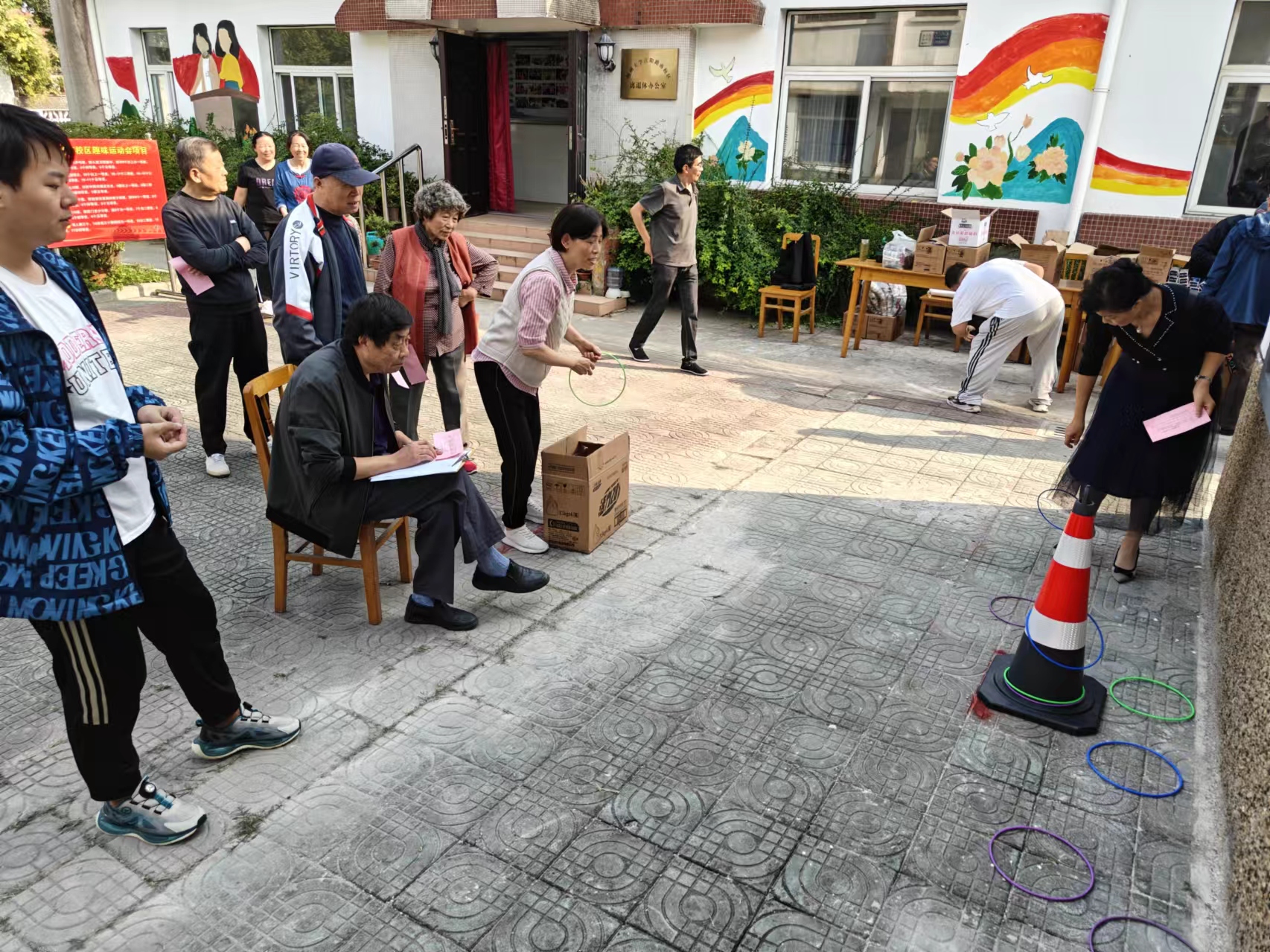 2024年10月11日下午,江阳路南校区离退休党支部与美术与设计学院共同开展重阳节趣味运动会活动。老少欢聚一堂,共同庆祝重阳节的到来。环设2202班的同学们为保证活动的顺利继进行,进行了志愿服务工作。